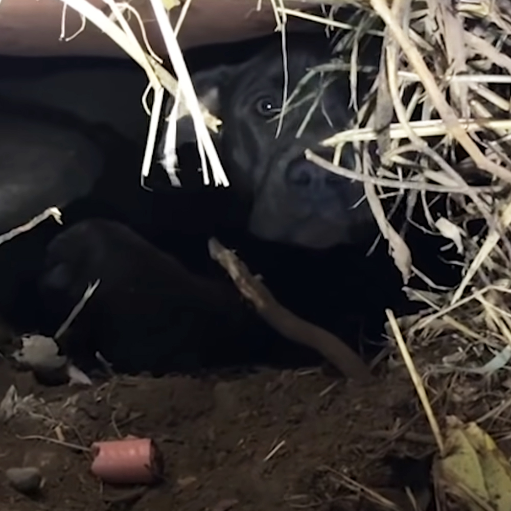 She growled at them when they went close to her puppies. So, Donna threw some treats out so that she could lure out the mama Pitbull. Donna was very patient and waited for the Pitbull to come out.