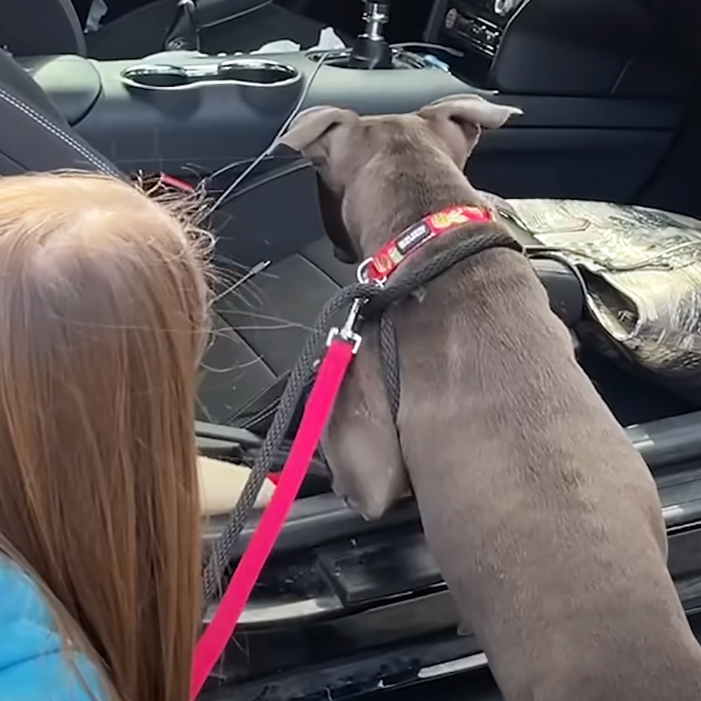The innocent animal hopped into Stacy’s car and loved the first car ride with her puppies. The Pitbull also happily enjoyed a yummy pup cup. Stacy found her very affectionate with her puppies. The dog mama loved to go on walks and had become Stacy’s play pal.