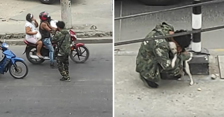 When Wara Ricoo looked out his apartment window in Colombia recently, he bore witness to one such case where canine affection made the day of a struggling street artist.