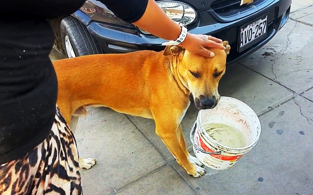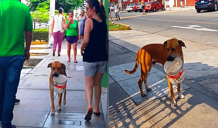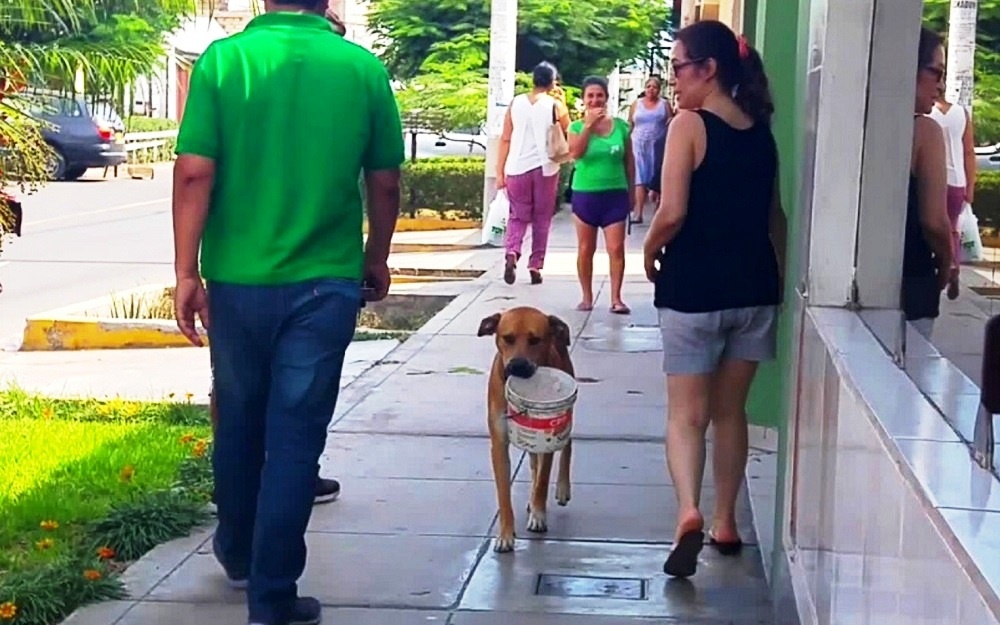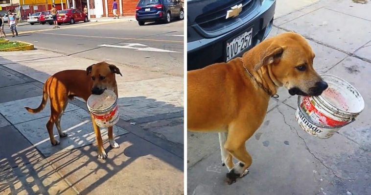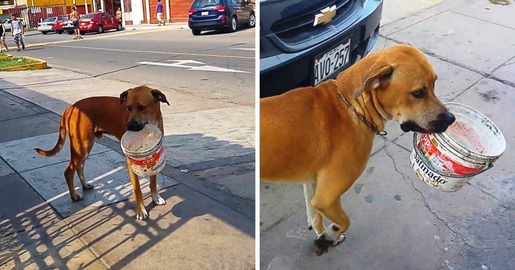 The locals of the capital of Peru, Lima, were ruined after seeing a poor homeless dog carrying an empty bucket in hope to get some water in a very hot day.