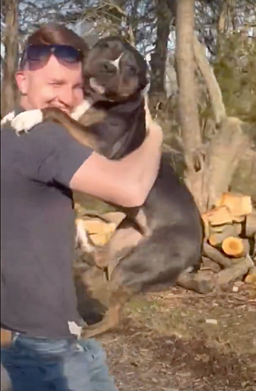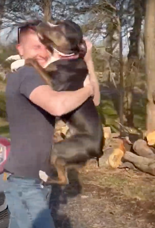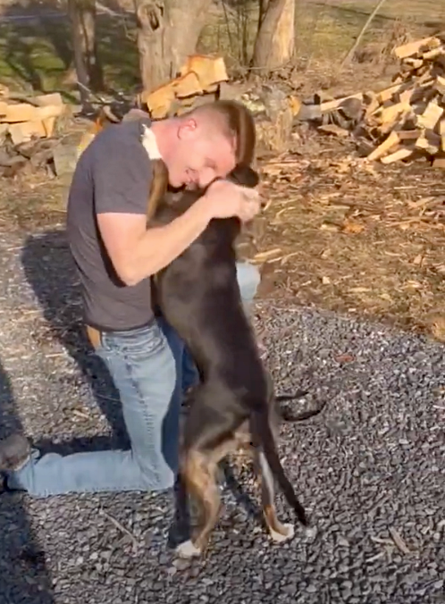 As soon as she caught a glimpse of him, Posie was unable to contain her enthusiasm. She raced toward him and leapt into his arms, wagging her tail rapidly and covering his face with kisses.