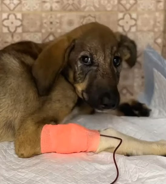 Flies and maggots started attacking the wound, she cried a lot. The puppy’s condition is critical. The puppy is still extremely young, and he has his entire life ahead of him.
