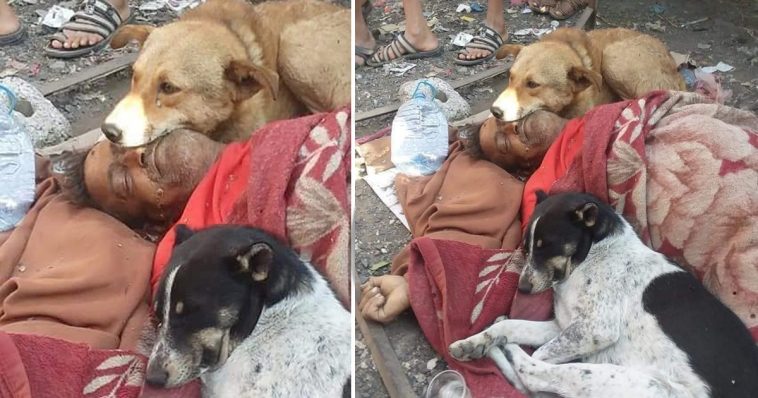 Yemeni activists reacted with a picture depicting a Yemeni citizen after his death and next to him a number of dogs that he was feeding at a market in the Yemeni province of Ibb, thinking that it shows the highest degree of loyalty.