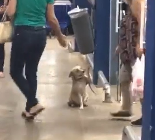 In the clip circulating on social networks is a cute short-haired, brown and white poodle. The dog, who unwittingly took on the role of “employee” to welcome customers each day outside the supermarket door, was tied up for some reason I’m not sure of.