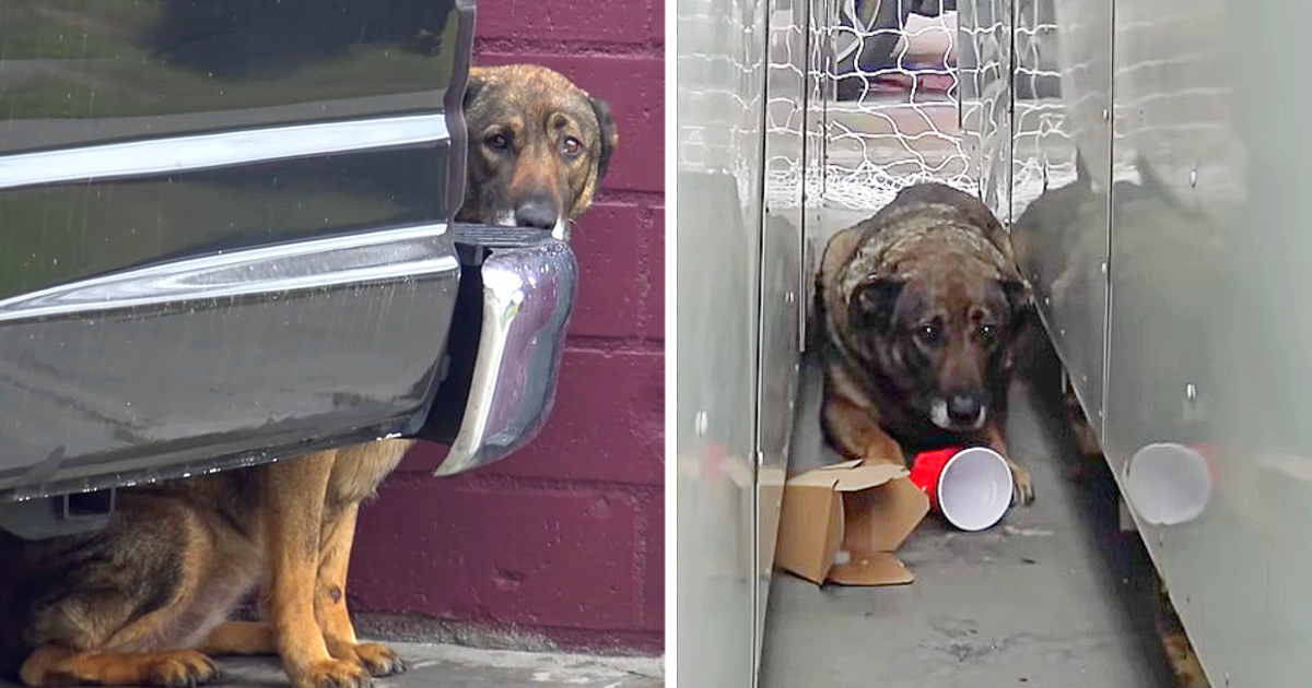 The dog had been hiding beneath a van for several days, clinging to the wall behind the automobile for fear of being seen by someone. He couldn’t stop himself from shivering violently. So the locals decided to take action.
