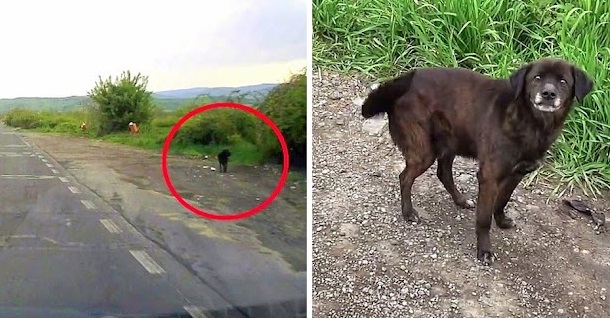 As she neared the roadside, her fears were confirmed: someone had abandoned a dog in the middle of nowhere. The dog looked fragile and old, with fleas and ticks on his back, indicating that he had been out for some days.