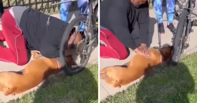 When this bicyclist’s dog collapsed while they were out in the middle of their ride/walk, it was a total panic moment.