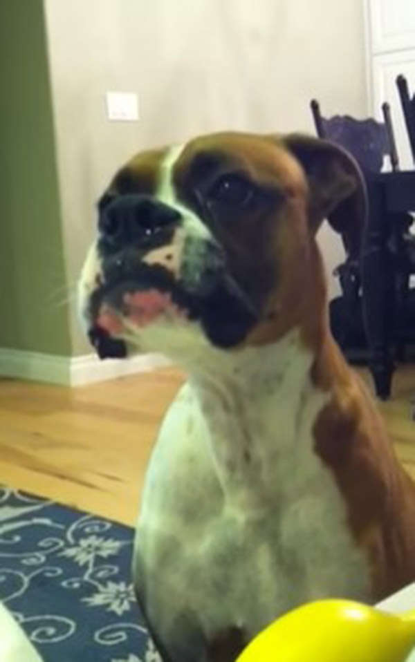 Here, Otis the cute Boxer tries to talk to his mother about something and becomes a little frustrated when she doesn’t understand him. So adorable!