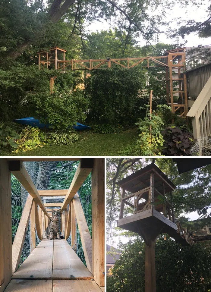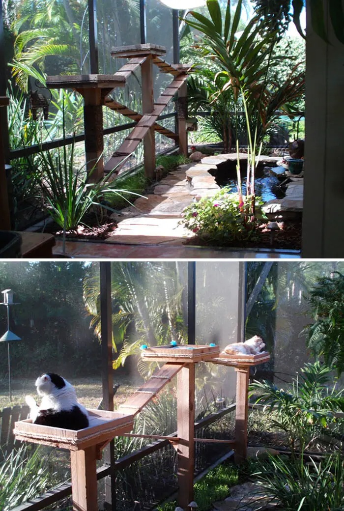 Cats sure have a lot of energy (even though they don’t usually show it in front of us), they have a curious nature and love to explore and roam around, so it is understandable that sometimes we might find it difficult to keep them stay still. Letting them outside without a guard is dangerous since roaming might get them lost from home, being attacked by predators like coyotes, foxes,… or got hit by a vehicle. The best solution is to have a safe area where they can still explore the outside world but within our watch and protection. Well, it’s time to build a cat patio