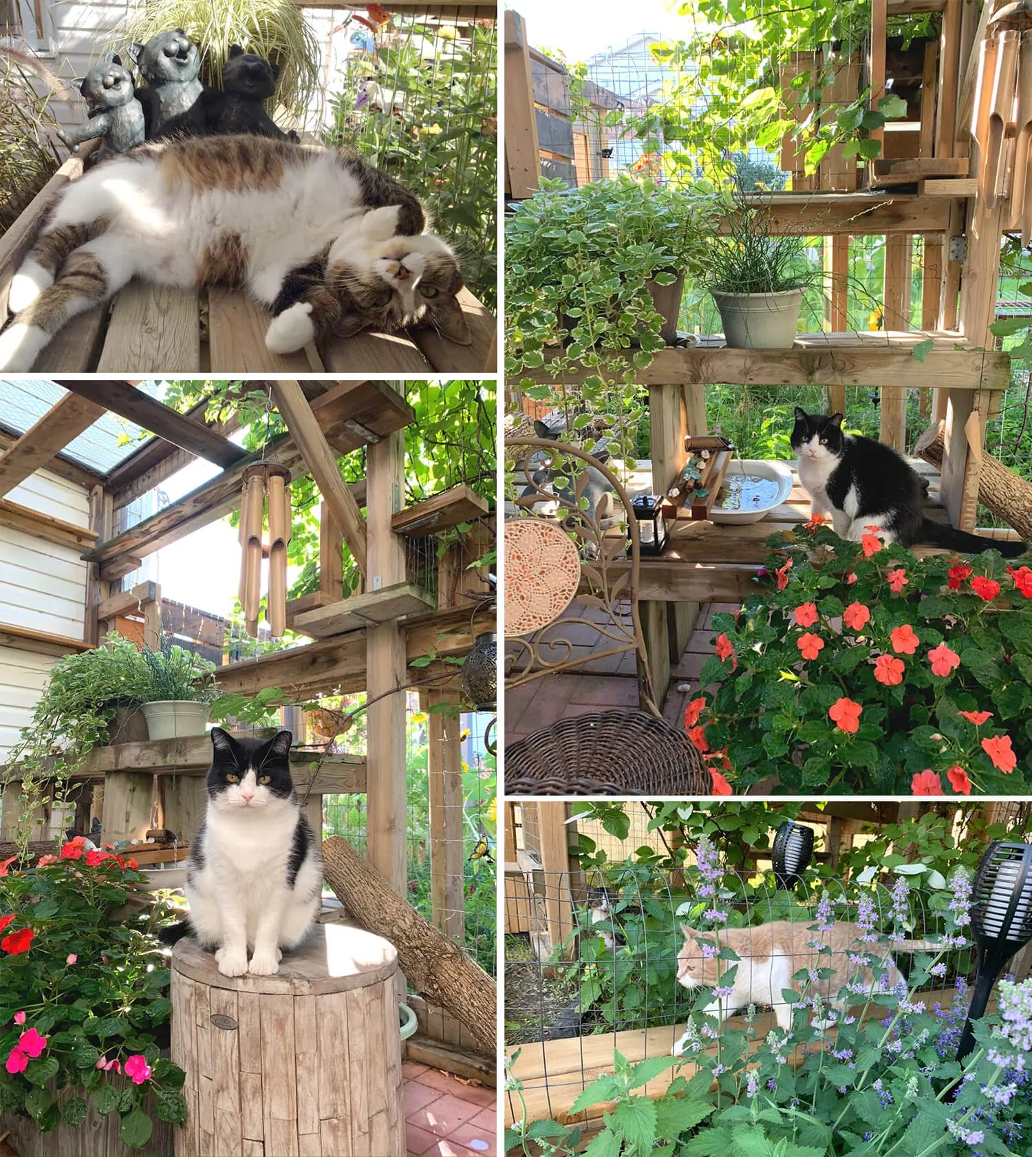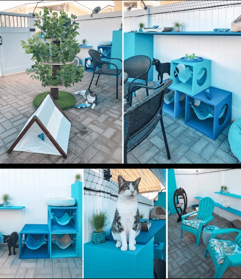 “While lounging in it one day with Serena curled up on my lap, I had a flash of inspiration to start Catio Spaces and combine my feng shui expertise and love of design, nature, and cats. One thing led to another (Serena has 4 catios and is my “quality assurance” expert), and I design custom catios, DIY catio plans and help cat parents from all over the world solve their indoor/outdoor dilemma.”