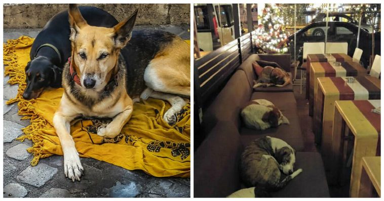 A photo of the homeless dogs cuddled up on the restaurant’s couches went viral on Facebook, being shared over 2,000 times: