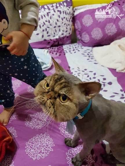 Jin Jin’s husband wasn’t very pleased when he saw it, however, he and Jin Jin were soon laughing about the whole thing. Poor Jin Jin looks as though he is wearing a mask – a cat wearing a cat mask!