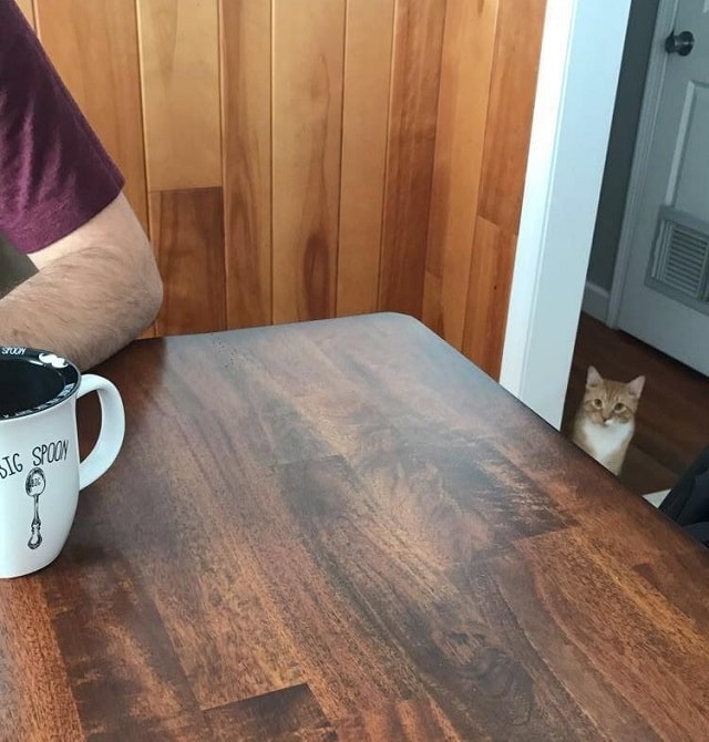 “My newly adopted cat Wilbur won’t stop staring at me. Soon after he came home he started staring. And he follows me around but not my husband,”