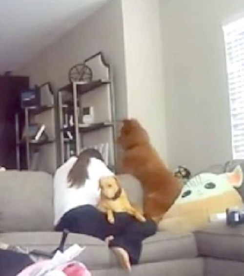 The heartwarming scene was caught on camera by a security camera in the living room, and the video is now trending on TikTok.