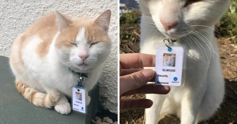 Like every day, Chantel went to work and walked past Elwood on the way. However, that day, she noticed something different dropping from the tabby’s collar. She took a closer look, and apparently, Elwood had been hired by the hospital to be on the security team of Epworth.