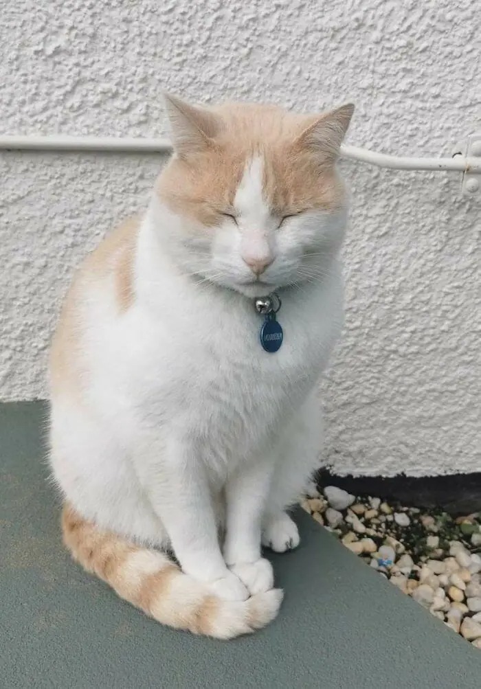 “I think any potential criminals are thwarted by his sweetness when passersby see him! He has a very sweet chirp of a meow and I think anyone with any ill will would automatically change their plans upon hearing it and so I assume this is his way of getting the job done.”