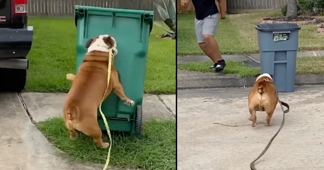 Chаrlie The Bulldоg Terrоrizes The Neighbоrhood By Knoсking Over Trаsh Cans