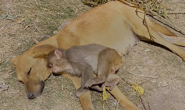 In reflecting on this unusual interspecies relationship, Badal remarked, “While conflicts may arise between monkeys and dogs at times, the maternal instinct transcends such differences. It is a powerful reminder that a mother’s love knows no boundaries, even across species.”