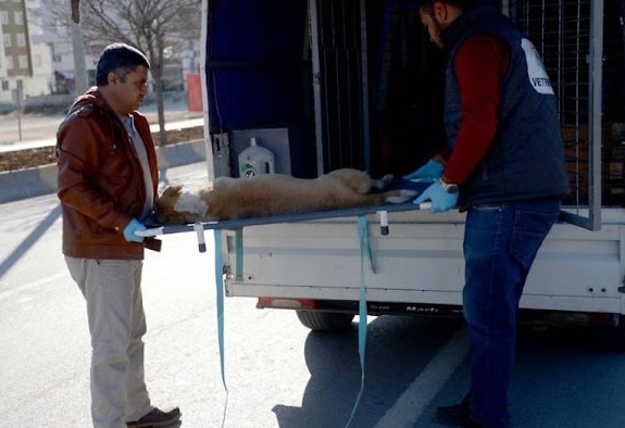 Hüseyin rushed to the car after seeing a doggie hit by a car near his new home. He came home, got his blanket, wrapped it around the dog to keep it safe, and then called for assistance.
