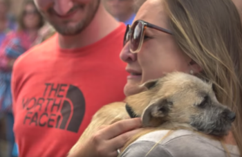 Everyone gathers around the trailer as the door swings open, and the tears begin to flow. Welcome to your new lives, pups!
