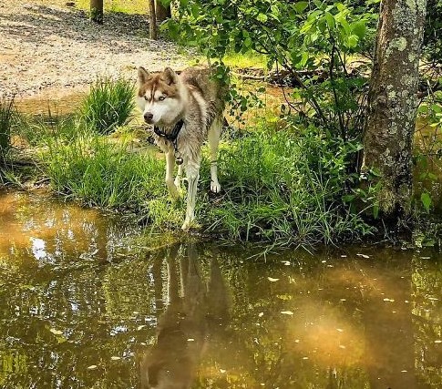 Whitney has been with Banner, a 3-year-old Husky, since she was just a puppy. Over the years, Whitney has trained Banner to perform a wide range of tasks, including alerting to PTSD episodes, anxiety attacks, headaches, guiding, retrieving medicine, interrupting self-harm, and more.