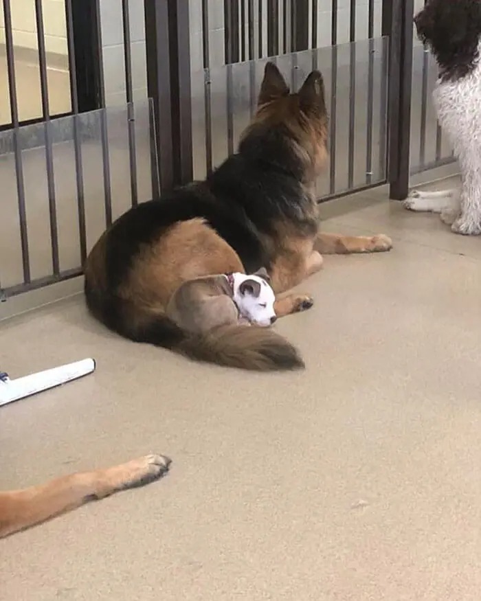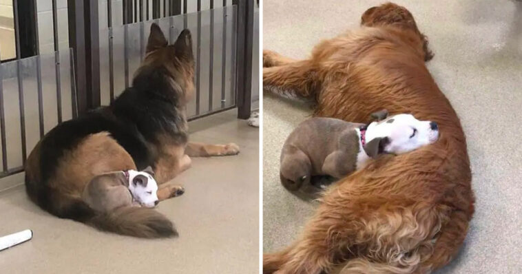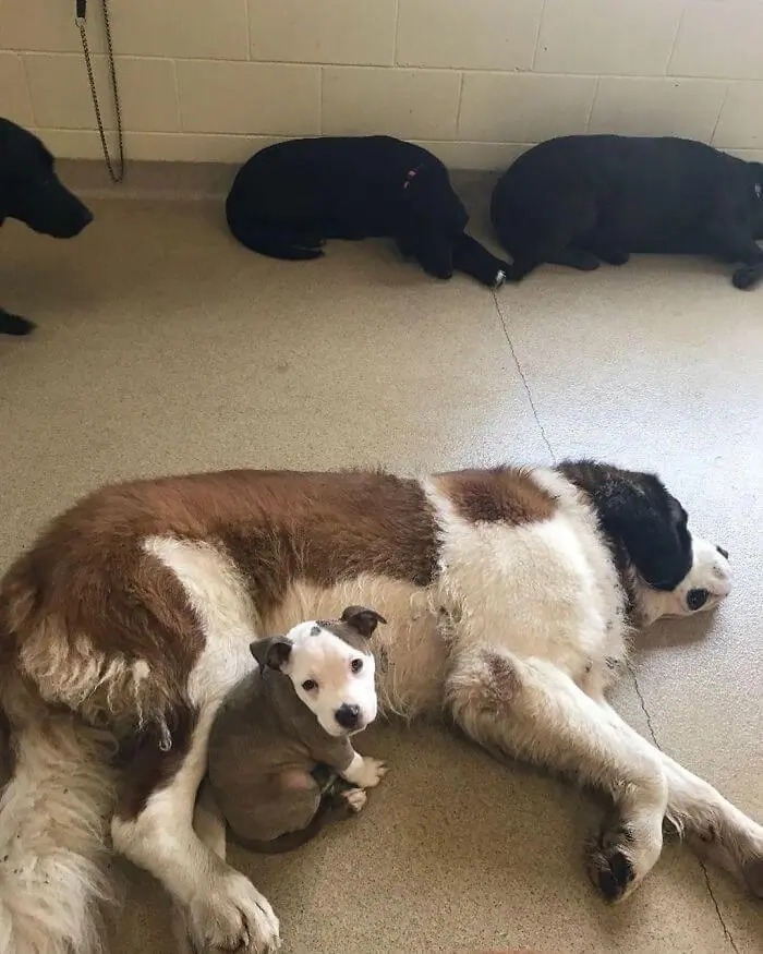 Everyone loves napping, and so is our lovely Edna. She’s been a member of daycare since day one, and that’s when she picked up a cute habit: after hours of playing and running around, she will look for the floofiest pup around and doze off on them! Many of her pals are pleased with this cute request of her. “All the dogs seem to enjoy the snuggling company,” Brianna Gottfried, Edna’s hooman. “Even the tiny wiener dogs.” Scroll down to see Edna snuggling up with her pals at the daycare center!