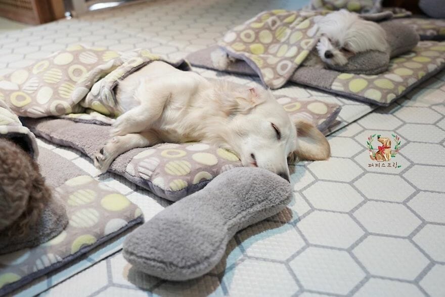 The day care also has an Instagram account that has gained popularity, thanks to some adorable pics of sleepy puppies.