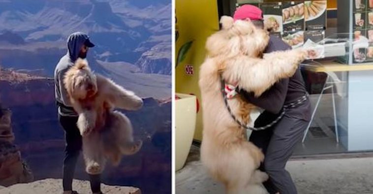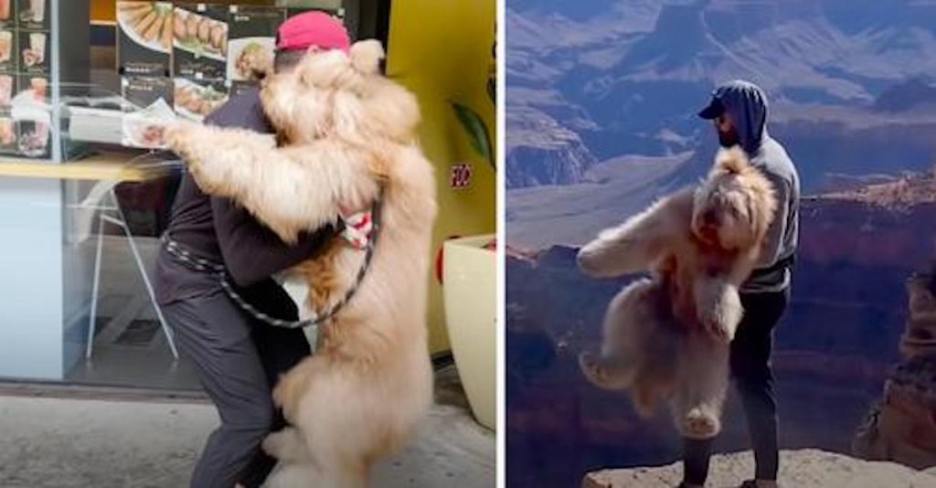 Anytime this gentle giant of a dog sees something “scary” he turns to Dad, and that’s his cue to pick him up and carry him!
