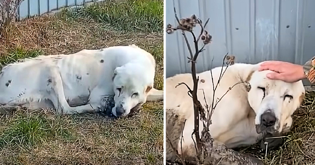 “A sight that wiped away my tears. An elderly dog was sleeping in the yard of the abandoned home.”