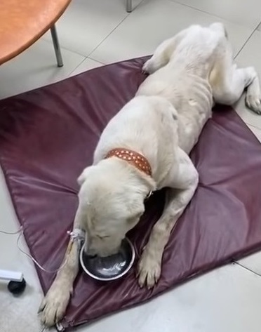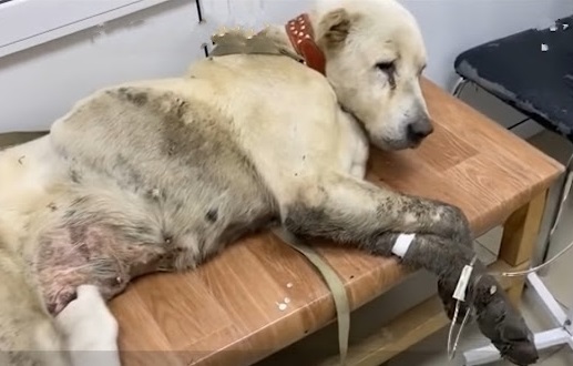 He had an owner, but the owner died two years ago from cancer. Since then, Snow became a street dog, homeless.