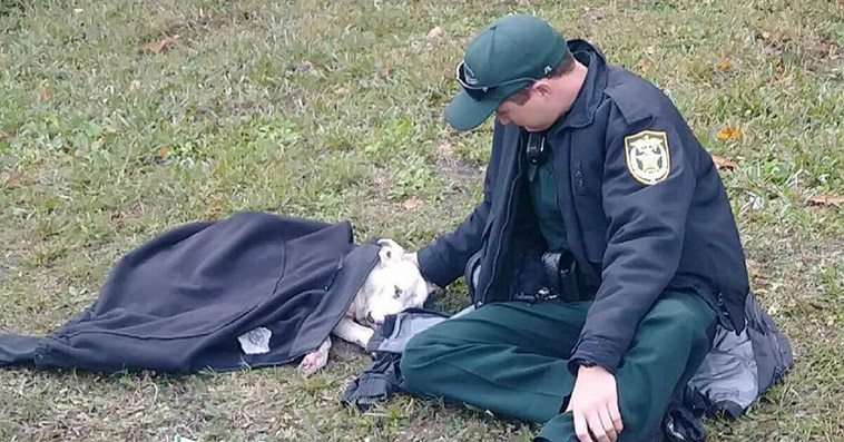 Deputy Josh Fiorelli used his own coat to drape over an injured dog who’d been hit by a car. He wanted to keep her warm and comfortable while waiting for help, and he didn’t realize anyone was watching at the time.