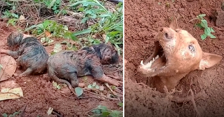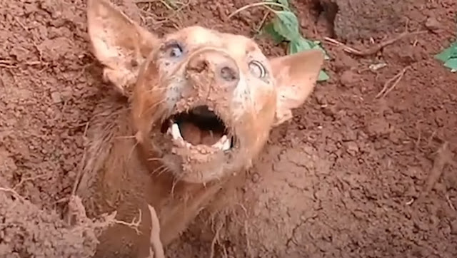 They diged deep into the dirt with a shovel… to pull up the canine. They had to take extraordinary care in order to prevent harming the dog.