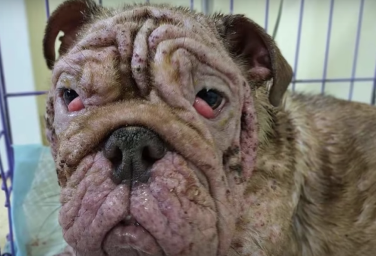We are proud to consider dogs as part of our family, as they are cherished companions in our lives. However, we often come across stories of unfortunate animals who haven’t had the same luck. This was the case for a bulldog puppy who survived by eating leaves and suffered from severe mange, causing her to lose almost all of her fur.
