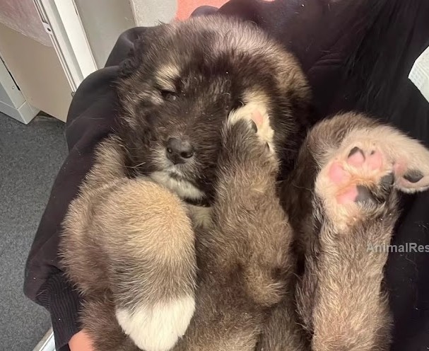 Her 2 puppies were less than one month old they called them Maya and Ivy. they are in terrific health.