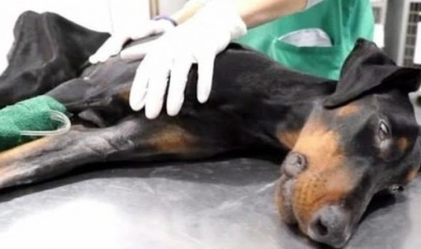 The dog was rescued and taken to the hospital because she needed emergency surgery.