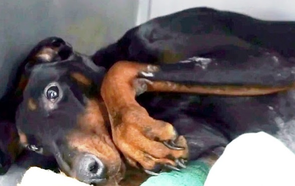 After being severely beaten by her abuser, Nancy the Doberman ended up in a junkyard with a broken back.