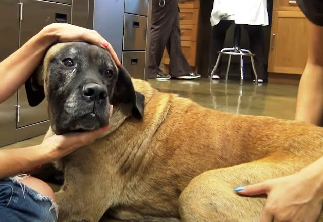 A concerned individual reached out to Hope For Paws regarding Tinkerbell, a 10-year-old Mastiff who had been found three weeks prior in an embankment 25 miles outside of Los Angeles. Seeing the dog malnourished and in pain due to her injured paw, the Good Samaritan wanted to ensure she received help.