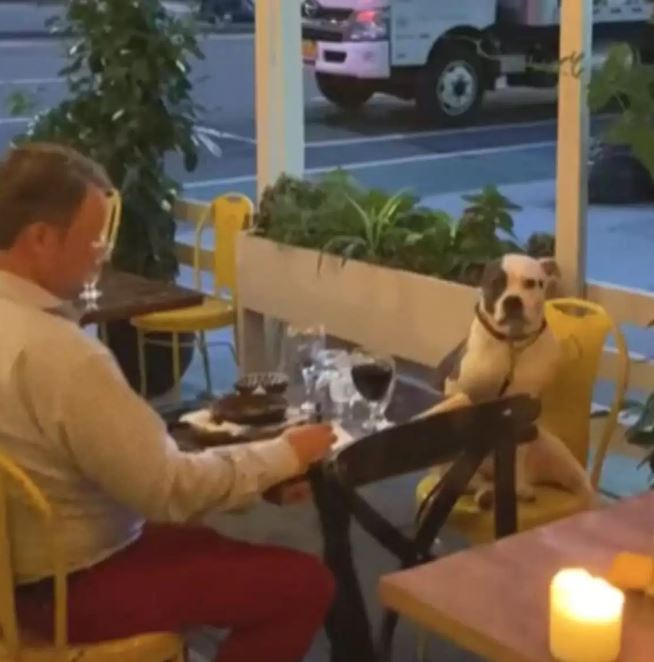 “[The man] was doing a crossword puzzle and sipping a glass of red wine with his meal. His date (the dog) was enjoying his own bowl of water, which he slurped politely,” Colón said. “It was really amazing how well-behaved the pup was. I saw better table manners displayed by this dog than I’ve seen from some humans.”