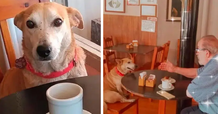 The dog simply sits and walks alongside people, contrary to what some people might infer because of the dog’s seeming plight. He seems to listen carefully to what people say when speaking to him. Since one of the patrons’ spouse, who she used to visit the café with and sit with, recently passed away, she now visits by herself, making Corchito even more of a presence for her.