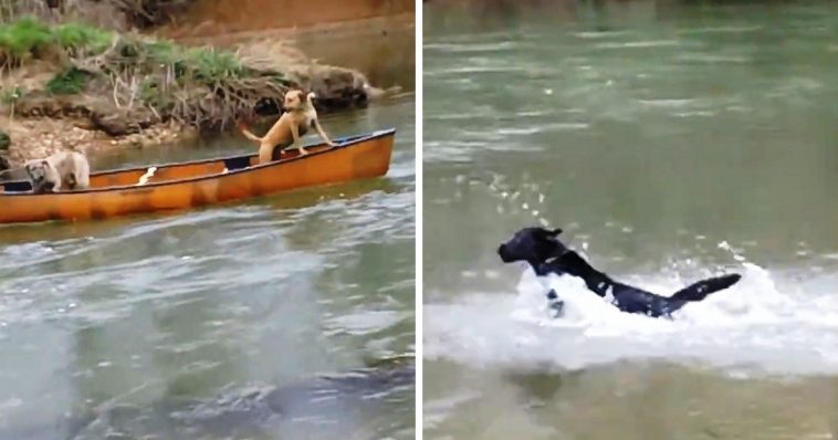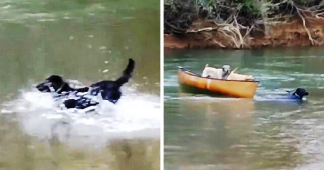 So when his 2 doggie siblings got themselves stranded on a drifting canoe, Robbie was the first one to dive in for a rescue!