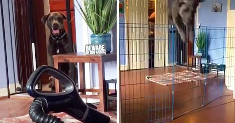 The athletic pooch would jump any doggy gate no matter how tall. After trying three different sizes with the same result, the owner was forced to get a bit more creative.