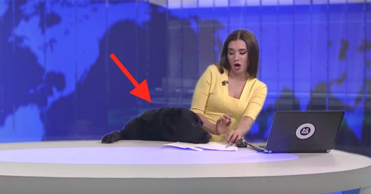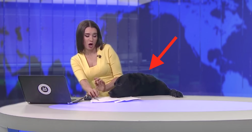 Anchorwoman Ilona Linarte, from Mir24 TV, was taken aback at first but finally came around and gave the pooch some pats on the head. The internet is eating this video up!