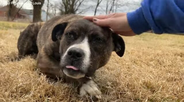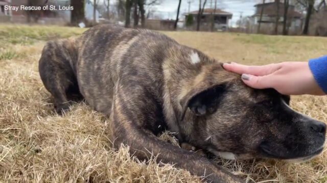 Rescuers from Stray Rescue of St. Louis were out on St. Patricks Day and discovered a sweet pup in need of help. Their shelter was full, but it was down-pouring outside and they knew they couldn’t leave this dog behind in the rain.