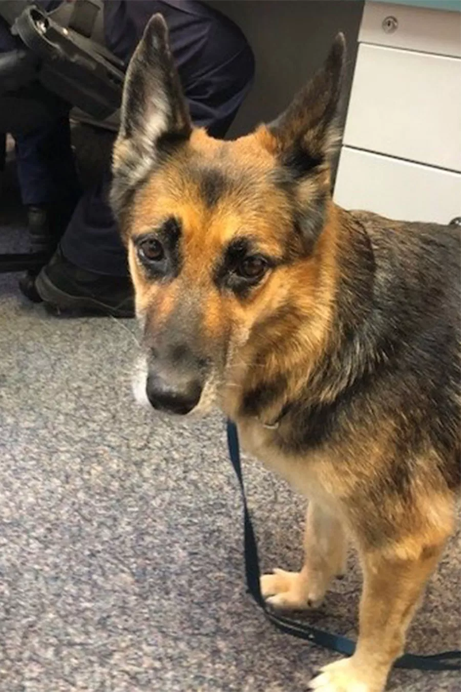 Senior Sergeant Jay Bairstow, from Brisbane Water Police, took care of Heidi while the search was carried out for her owner.