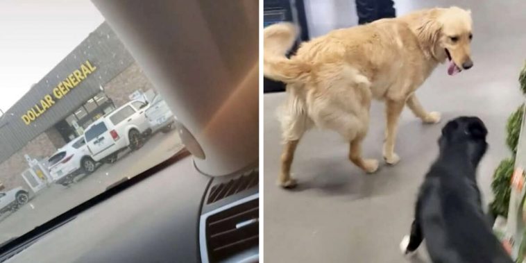The woman happened to see the dogs go into a Dollar General together! Upon arrival, Mom walked into the dollar store about as embarrassed as could be.
