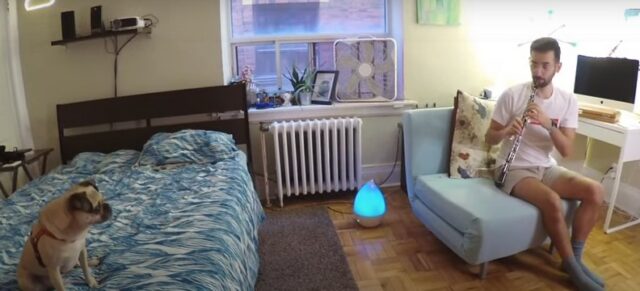 Ron is a professional oboist, and he decided to see how the 7-year-old Pug would react to hearing the oboe for the first time in her life.