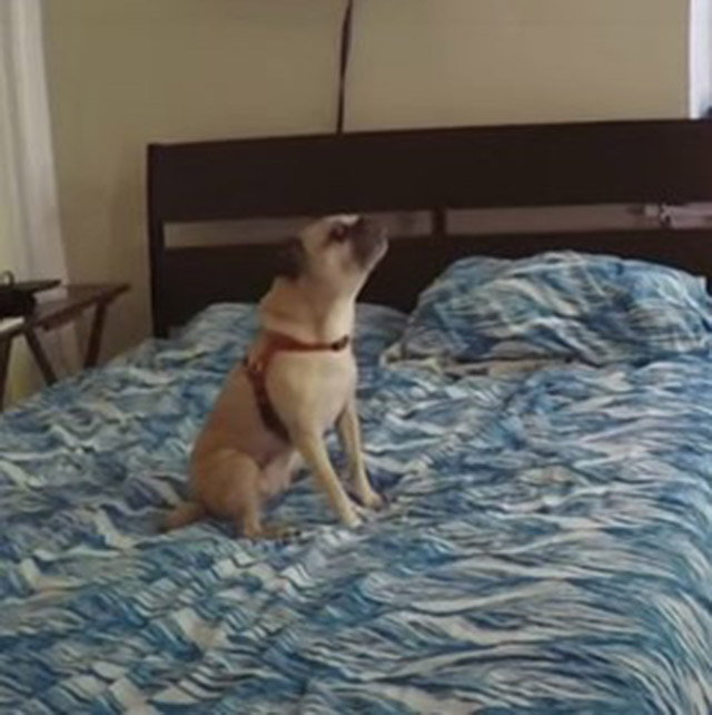 Turn up your speakers and enjoy Chewie the pug singing her song as Ron accompanies her on an oboe. Great job, you two!