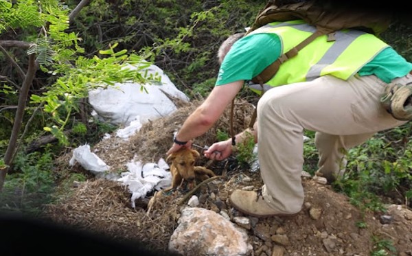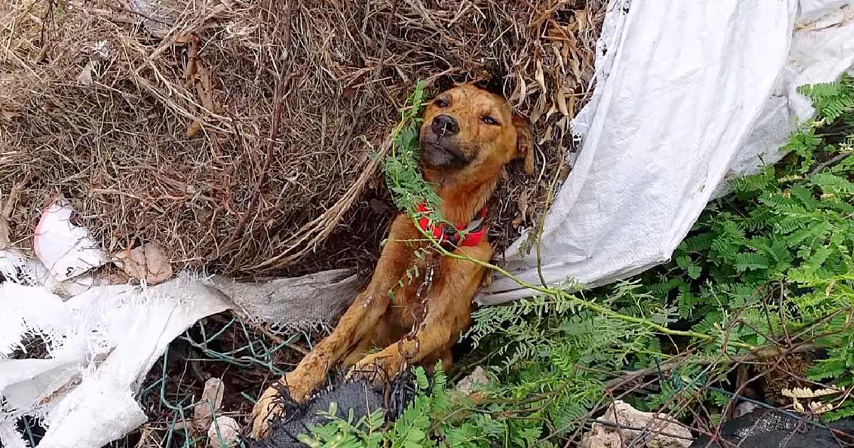 He was on his deathbed. The worst part was that he was stuck in a remote location on the side of a road, with no way of escaping on his own. He was stuck because he wore a collar with a long chain. To make matters worse, he was completely indistinguishable from the road. He had only a remote chance of being rescued in time.