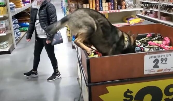 When Shannon Emery from Liberty, Missouri took his dog shopping for a new toy, he wasn’t expecting her to get so ‘into’ it.