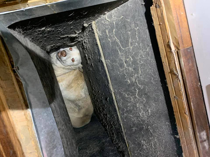 They heard the faint barking of the old dog coming from somewhere in the home… and discovered that Hope was trapped inside the air vent!